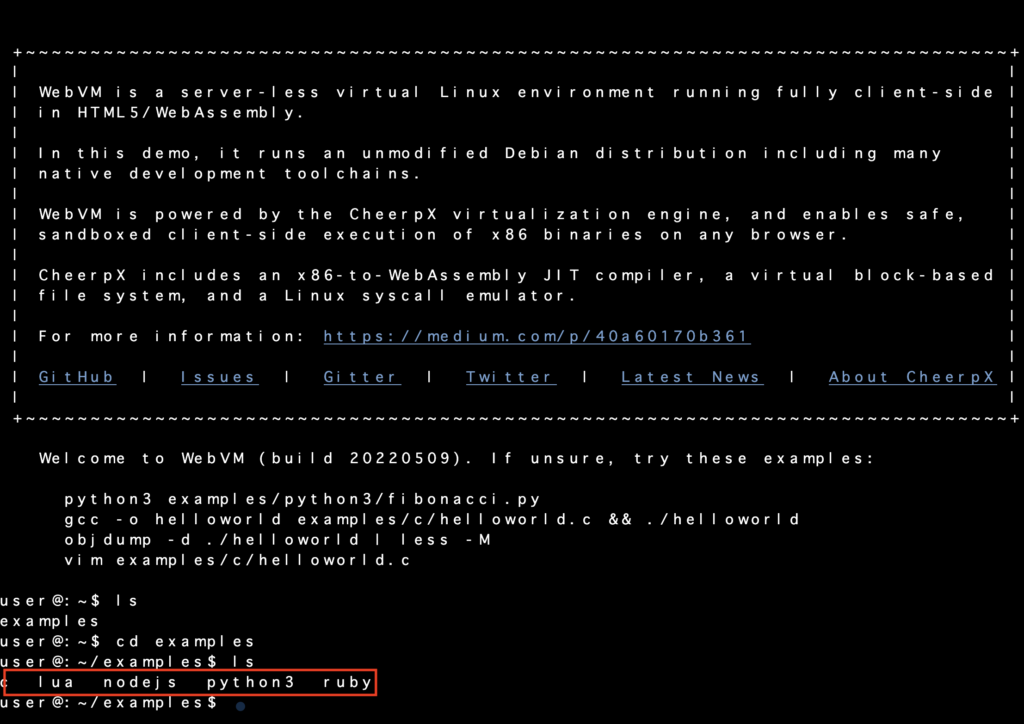 試せそうなものは実際にWebVMでコマンド操作してみてください。