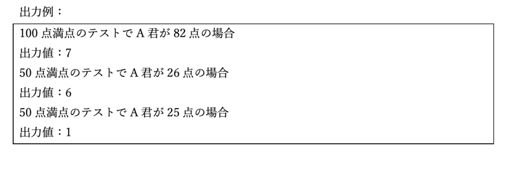 ※テストの点数の上限 N、A 君の点数 X は、実際に変数として定義して下さい。